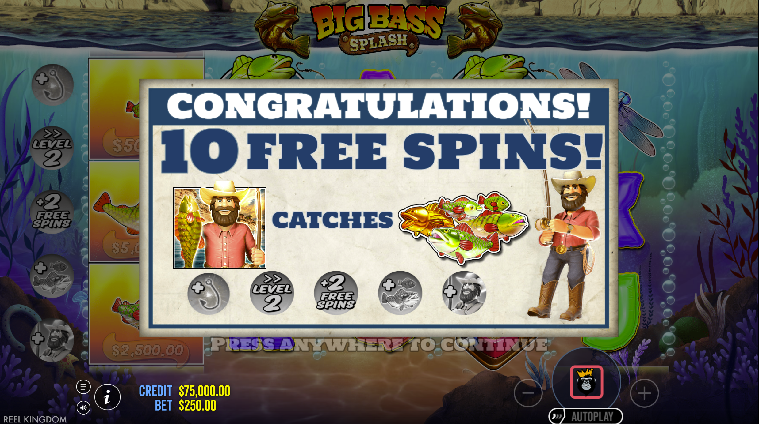 • Sticky Fisherman Wild: During free spins, Fisherman Wild sticks to reel 5 for guaranteed collections